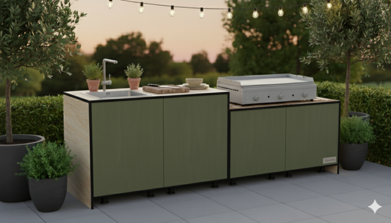 Grâce à notre partenariat avec Stratelle, nous vous proposons désormais des cuisines d’été fabriquées en France, combinant qualité, design et personnalisation.
