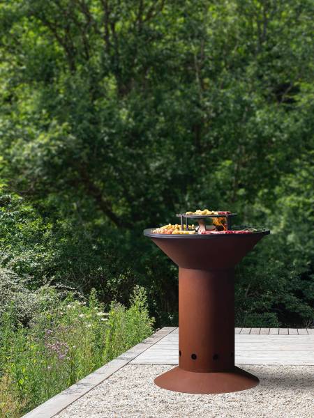 Pour le corps des planchas, la fabricant utilise de l'acier CORTEN (de la marque CORTEN) qui est résistant aux intempéries et prend un aspect rouillé aussi esthétique que contemporain.